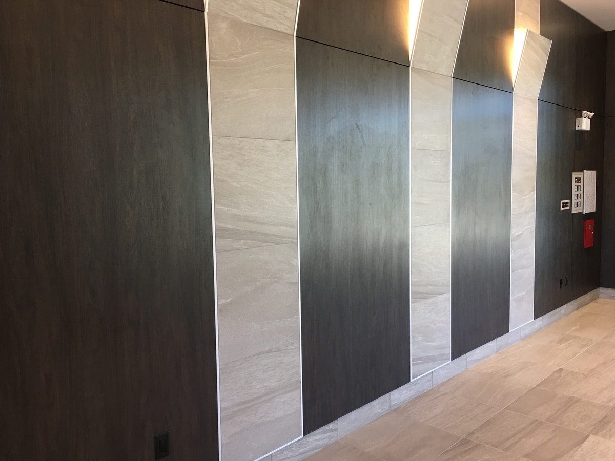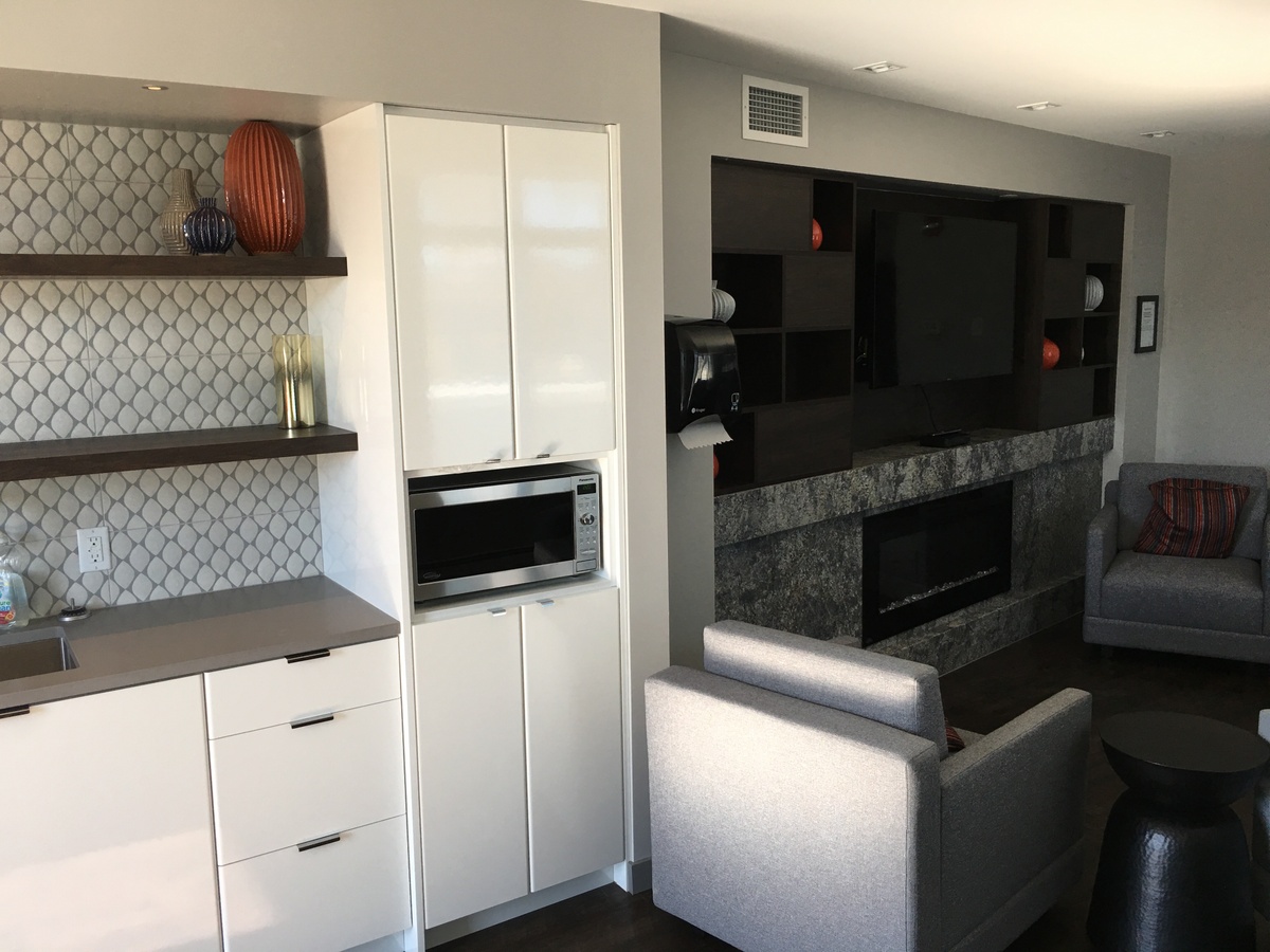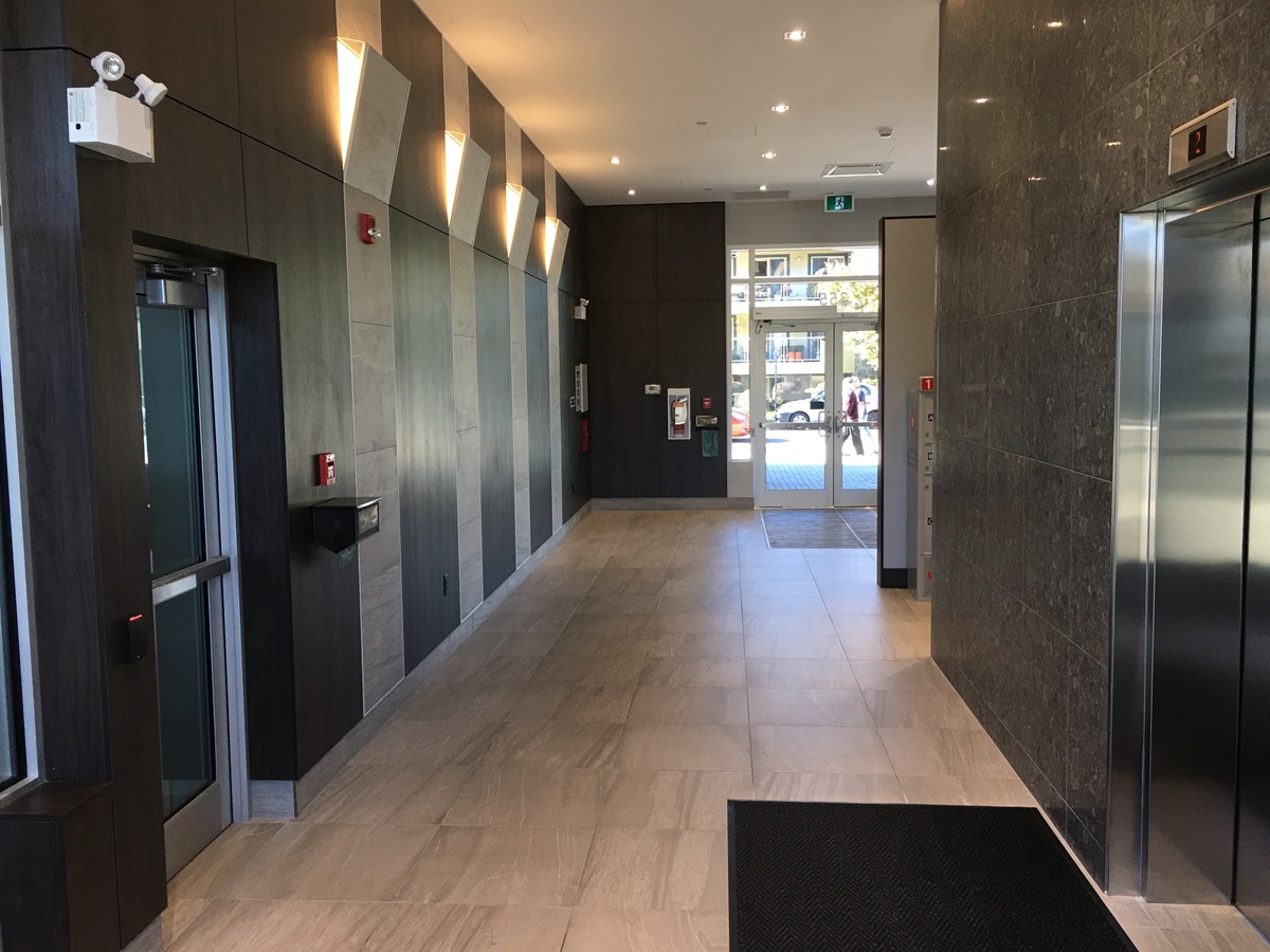 Low-emitting VOC (volatile organic compound) materials were selected and used throughout the development. VOCs are chemicals that contribute to a “new car smell”, and these chemicals can be harmful to human health and comfort. This was a focus not only of the shared spaces such as a the lobby, and amenity spaces, but also the residential suites. The building also employs outdoor air monitoring, increased air ventilation through the use of MERV 13 rated filters, and the use of entryway mats. The heat recovery ventilator (HRV) ensures that the indoor spaces can efficiently receive clean outdoor air.