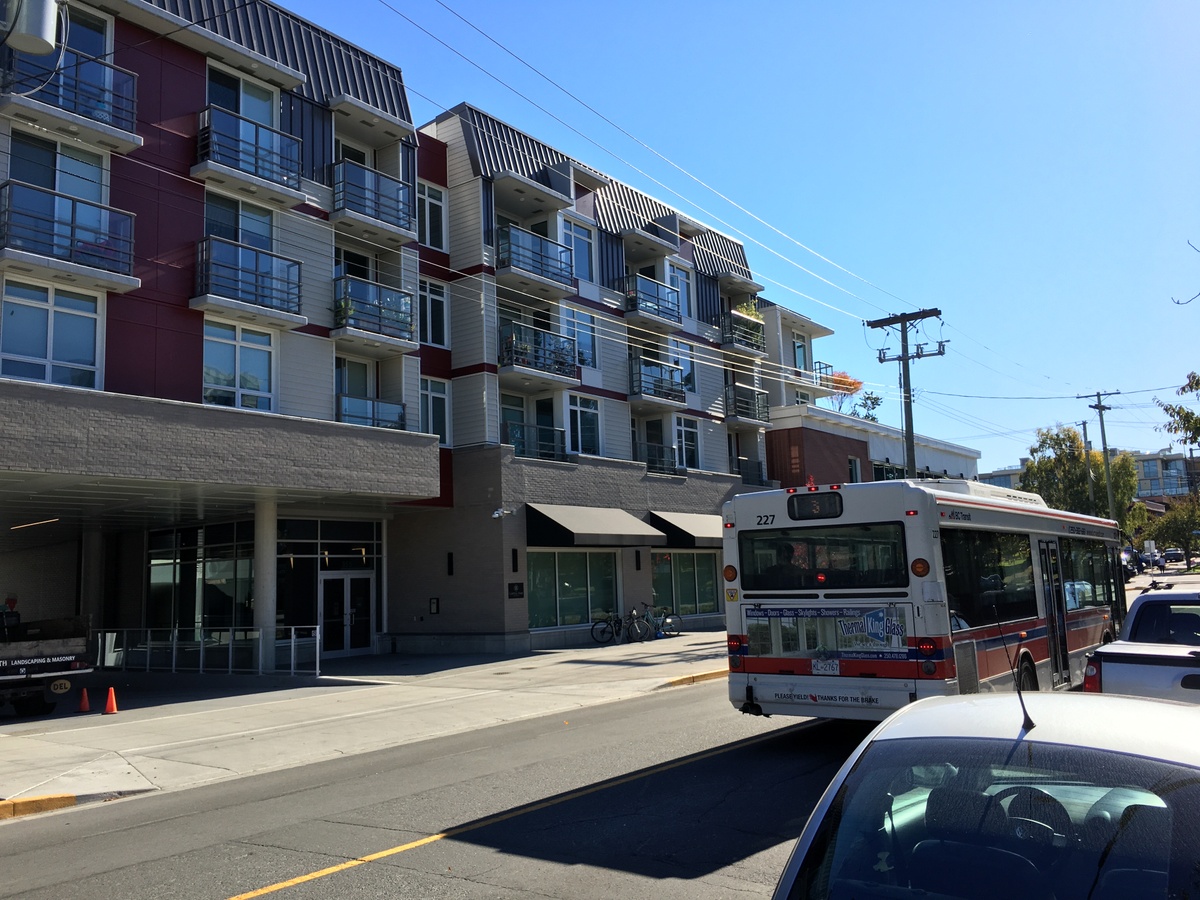 The building provides 52 rental units close to the British Columbia legislature in the historic James Bay neighbourhood. While the neighbourhood is already rich in amenities, with several restaurants, cafes, and stores within walking distance, the building itself includes two large commercial spaces, contributing to a traditional mixed-use building in a neighbourhood where many residents also work.