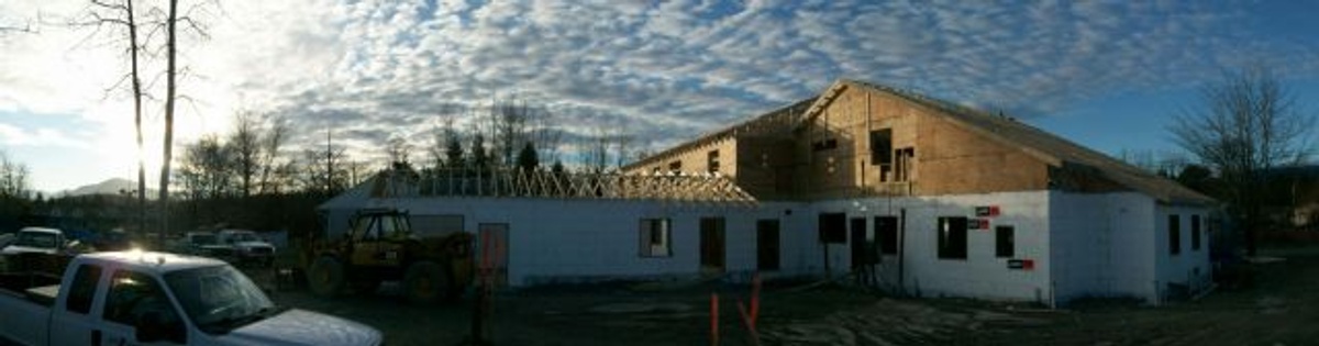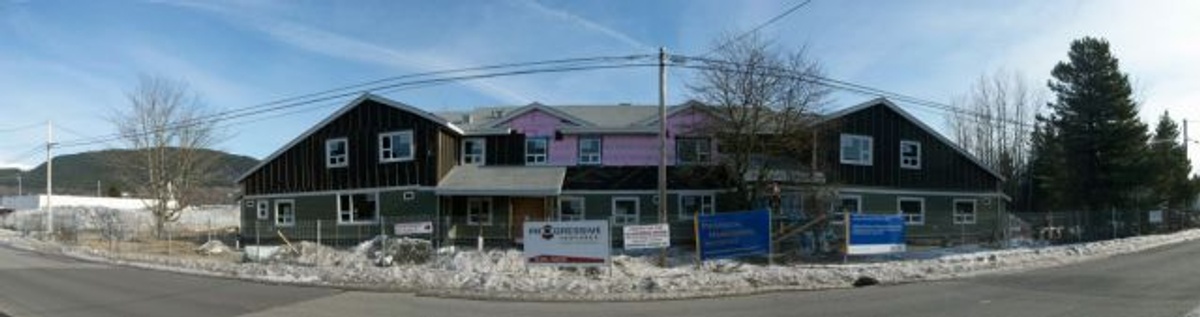 The development is a two-storey, wood-frame building designed to Leadership in Energy and Environmental Design (LEED) Gold certification standards.