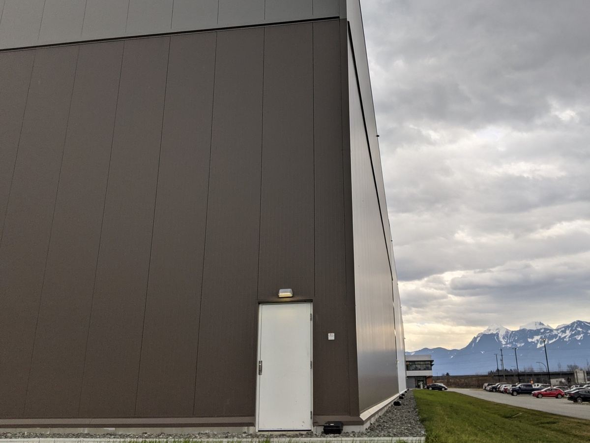 An insulated metal panel design was selected for the exterior walls. This substantially reduced the amount of concrete relative to usual tilt-up concrete warehouse design