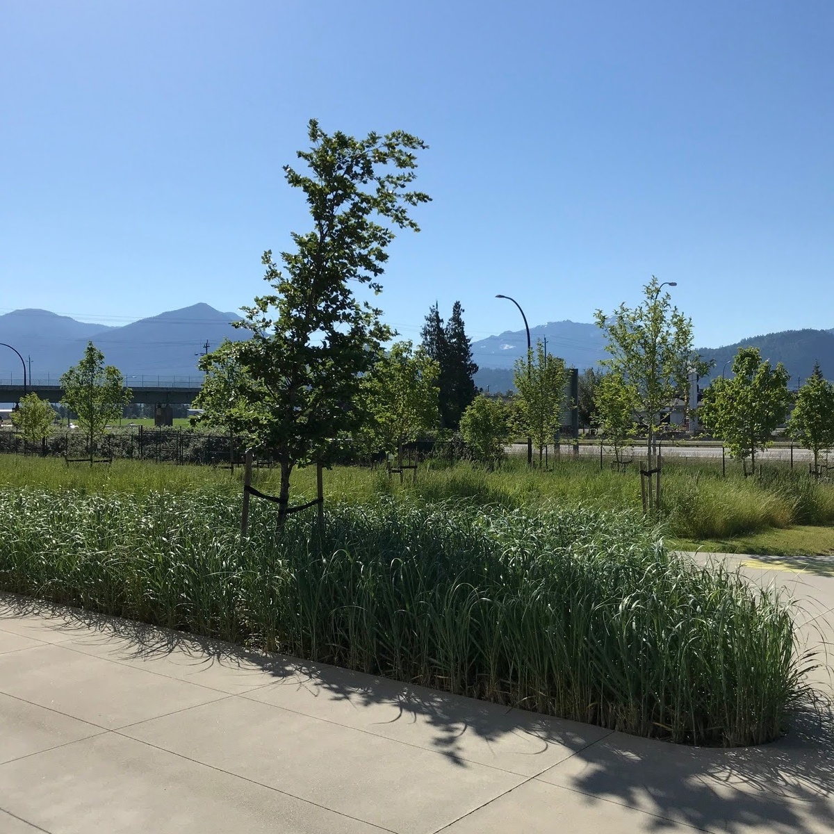 Bioswales in the parking lot collect runoff from the staff parking area and remove pollutants and suspended solids.