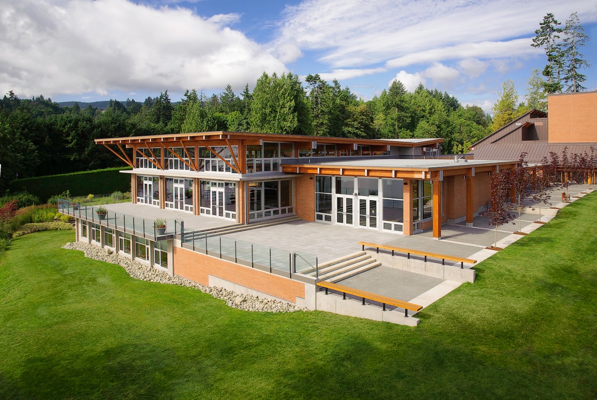 Brentwood College School is a private university preparatory school for students in grades 9 through 12. The Art and Mary Jane Crooks Hall was added to the existing campus to house a new dining room and student services centre.
