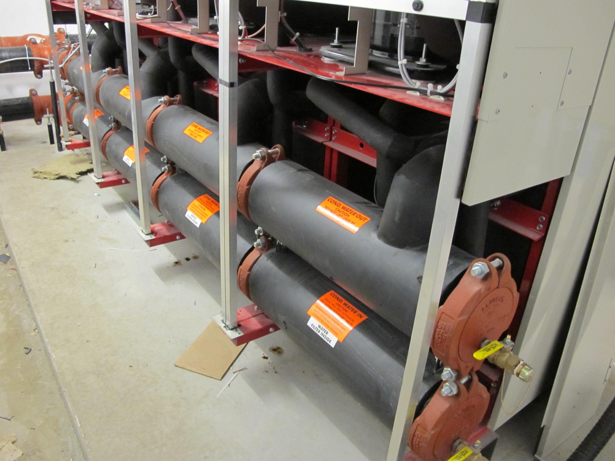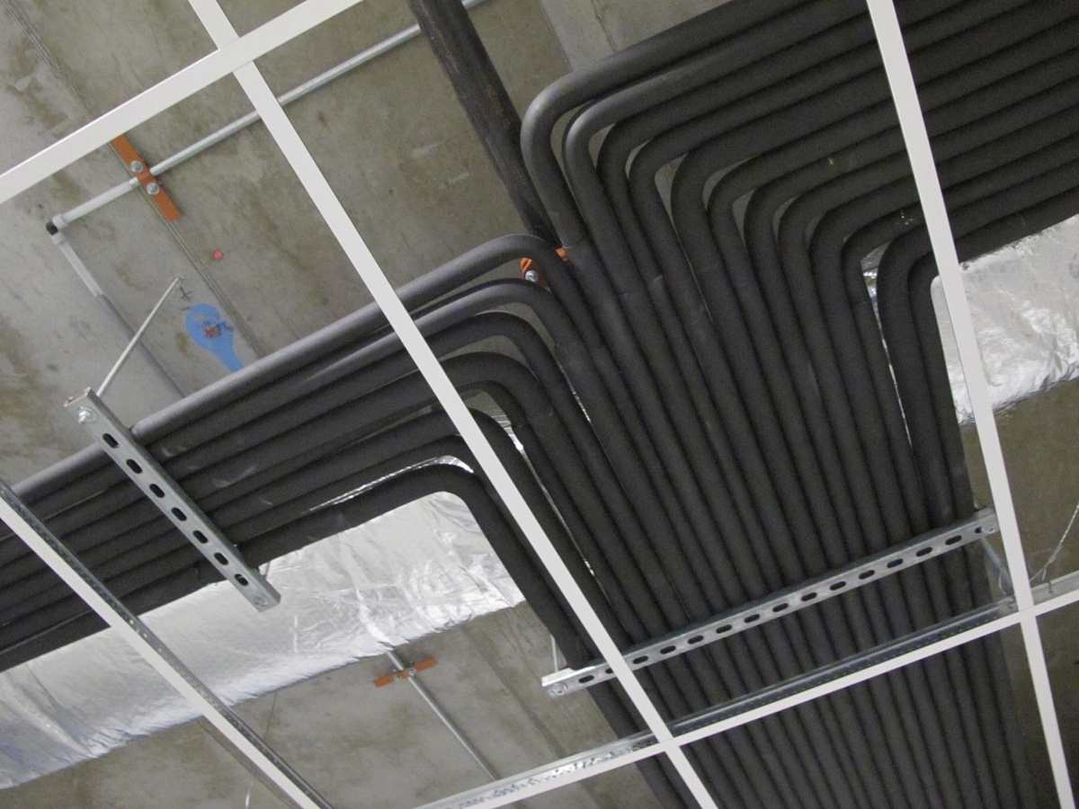 Deep below the project, a state of the art geo-exchange system reduces the project’s reliance on GHG-emitting fossil fuels. A high efficiency variable refrigerant flow (VRF) water-source heat pump was connected to the geo-exchange heat pump and backup condensing boilers. The VRF fan coil systems allow for a more efficient collection and distribution of heating energy where needed within the building, transferring waste heat from one zone to another. The equipment has a high coefficient of performance (COP) value to further support the collection and conversion of ground heating energy into usable heating energy within the project’s office space.
