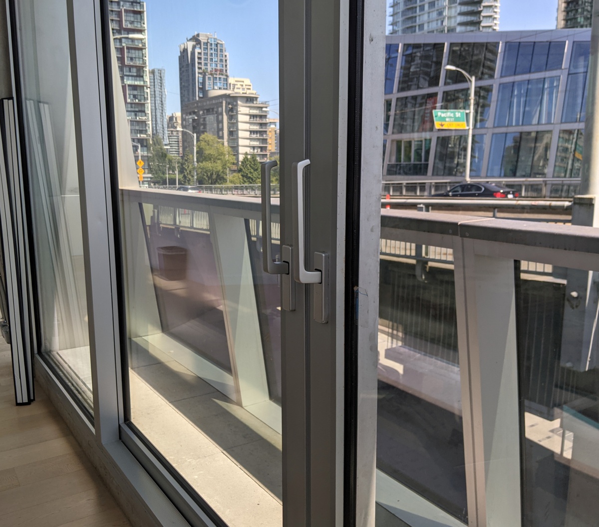 The building has a high performance envelope including heavy lift and slide balcony doors that also provide air tightness. This high level of air tightness keeps filtered conditioned interior air separate from outdoor air and saves energy, in addition to acoustic and thermal comfort benefits.