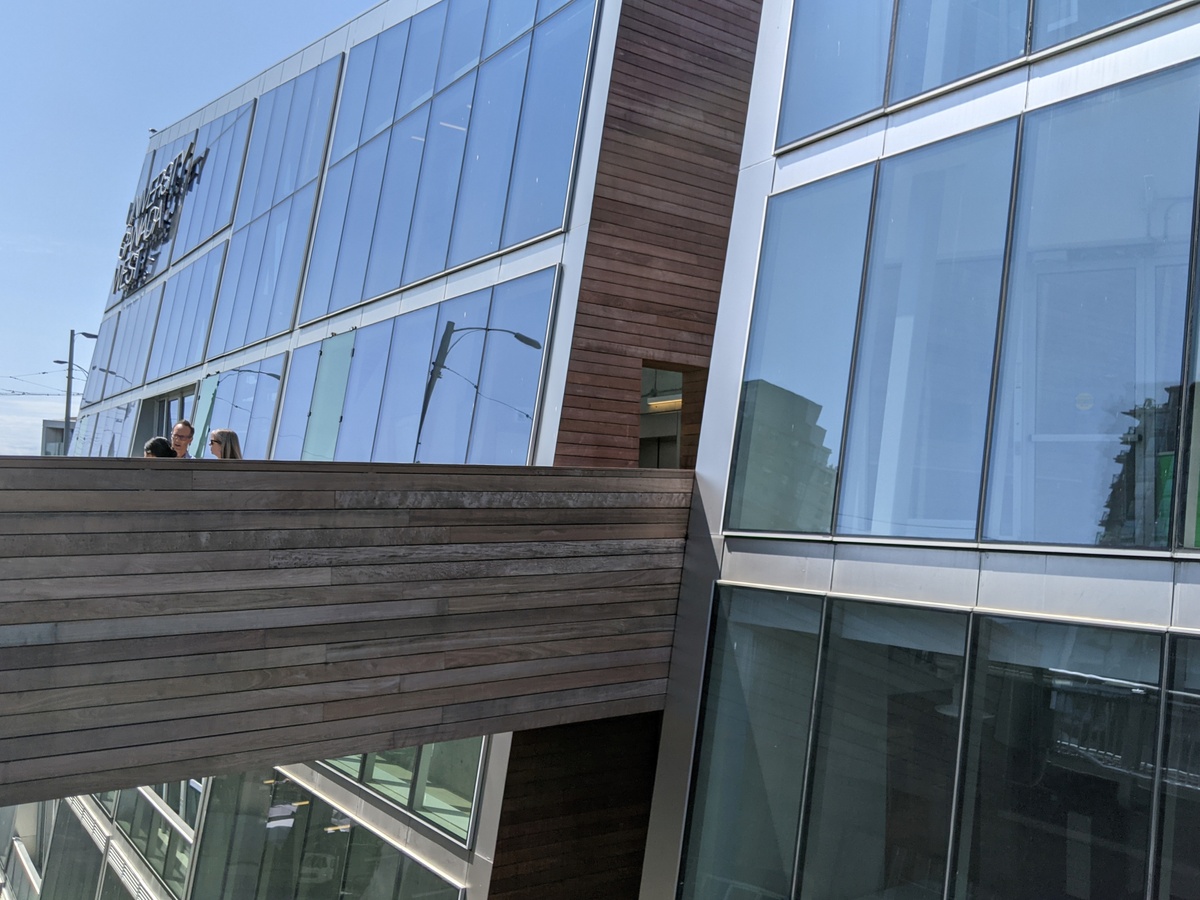 Generous amounts of glazing bring in plentiful daylight and connection to the outdoors. The triple-pane, air sealed windows allow excellent daylight access to occupants, views of the spectacular bridge and surrounding city, while keeping out unwanted noise and pollution from the bridge.